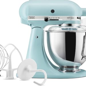 Prepare hasta 9 docenas de galletas en un solo lote con la batidora de pie con cabeza inclinable KitchenAid Artisan que cuenta con una potencia de 325 watts. Esta batidora también cuenta con 10 velocidades para mezclar, amasar y batir los ingredientes de forma rápida y fácil, y está disponible en una variedad de colores para combinar perfectamente con el diseño o la personalidad de su cocina. Todas las batidoras kitchenaid incluyen los accesorios globo, paleta, gancho y bowl. Modelo KSM150PSMI