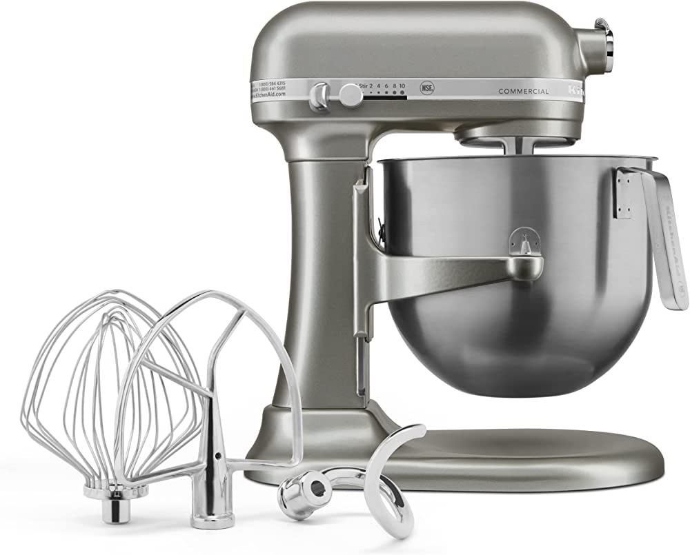 CERTIFICACIÓN NSF PARA USO COMERCIAL Con el más potente y silencioso motor de 1.3 caballos de fuerza (HP) de alta eficiencia la Batidora Comercial KitchenAid® está diseñada para una operación continua y le ofrece un par de torsión óptimo con menor almacenamiento de calor. Maneja fácilmente recetas que requieren un largo tiempo de mezclado, batido y amasado. El diseño todo de metal de los engranajes, produce un sonido leve y silencioso. Todas las batidoras kitchenaid incluyen los accesorios globo, paleta, gancho y bowl. KSM8990CU