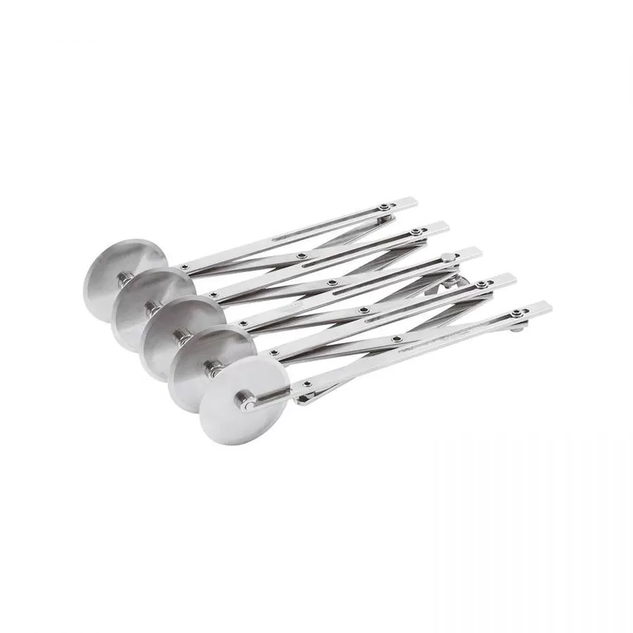 MULTICORTADOR DE MASA DE LA MARCA ITALIANA SILIKOMART CON 5 CUCHILLAS, FABRICADO DE ACERO INOXIDABLE DE LA MAS ALTA CALIDAD. TE PERMITE CORTAR TIRAS DE MASA PERFECTAMENTE UNIFORMES Y SE PUEDE AMPLIAR PARA ADAPTARSE A SUS NECESIDADES.