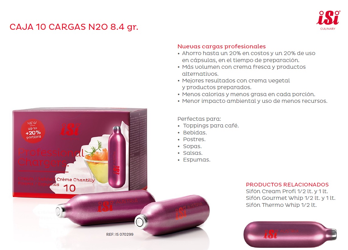 CARGAS PARA SIFON CAJA CON 10 PIEZAS ISI