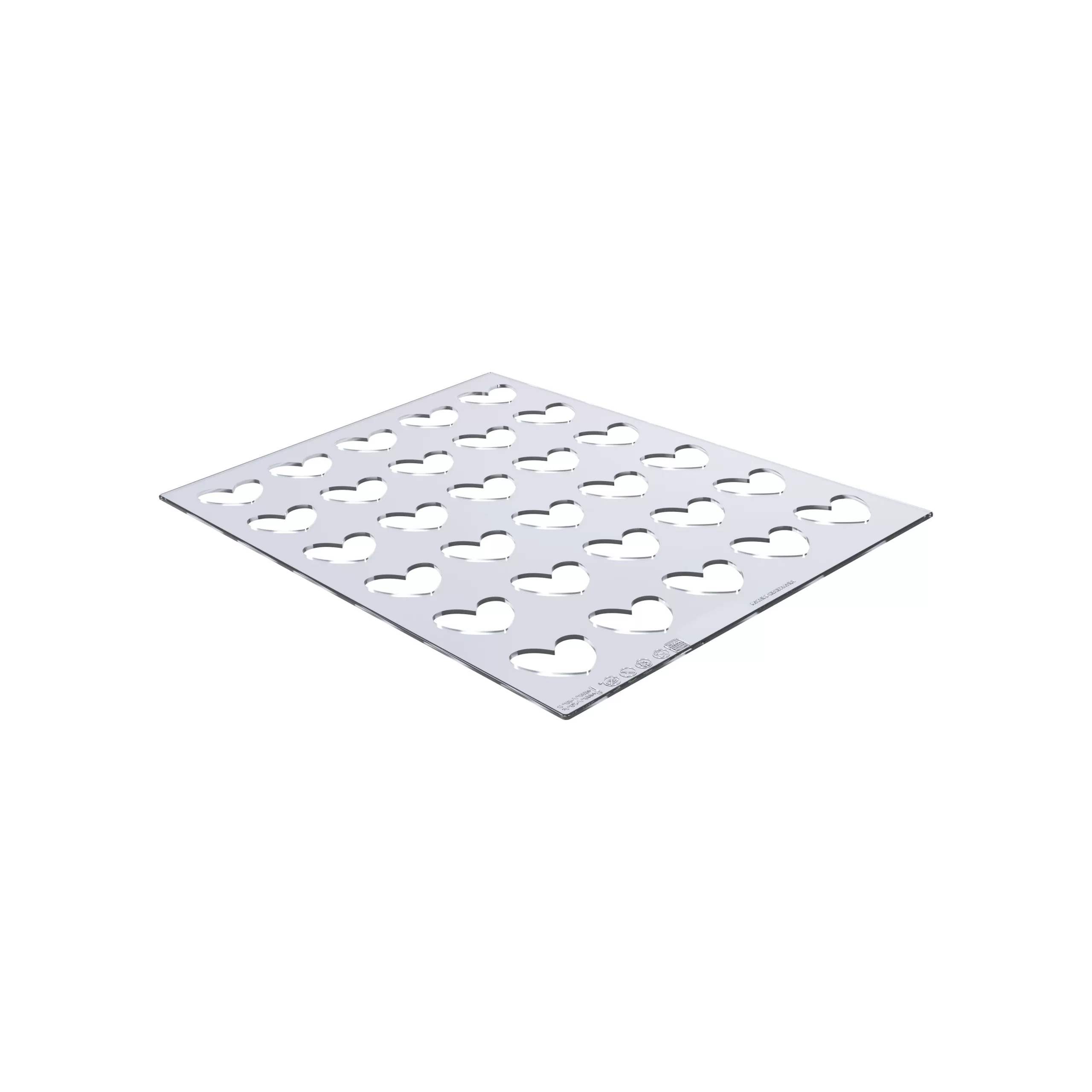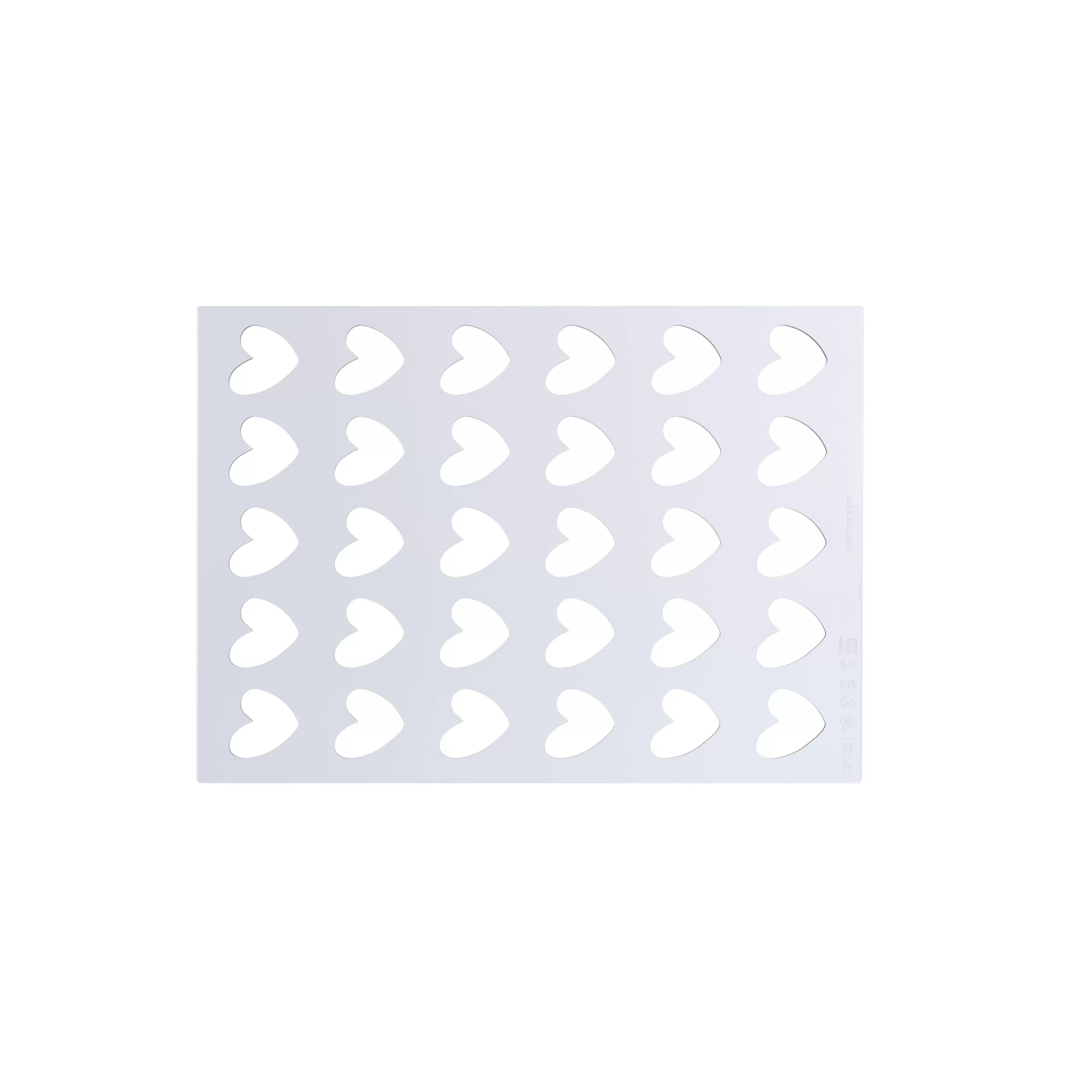 CREA DECORACIONES PERFECTAS CON EL MOLDE DE SILICONA PLATINO CHABLON CORAZÓN DE SILIKOMART PROFESSIONAL VERTIENDO CHOCOLATE, CARAMELO O ISOMALT EN LAS CAVIDADES. TIENE EXCELENTE RESISTENCIA TÉRMICA (-60°C +230°C) PARA SU USO TANTO EN EL HORNO COMO EN EL CONGELADOR. CONTIENE 2 MOLDES CON 30 CAVIDADES DE MEDIDAS 31MM X 31MM X H 2MM.