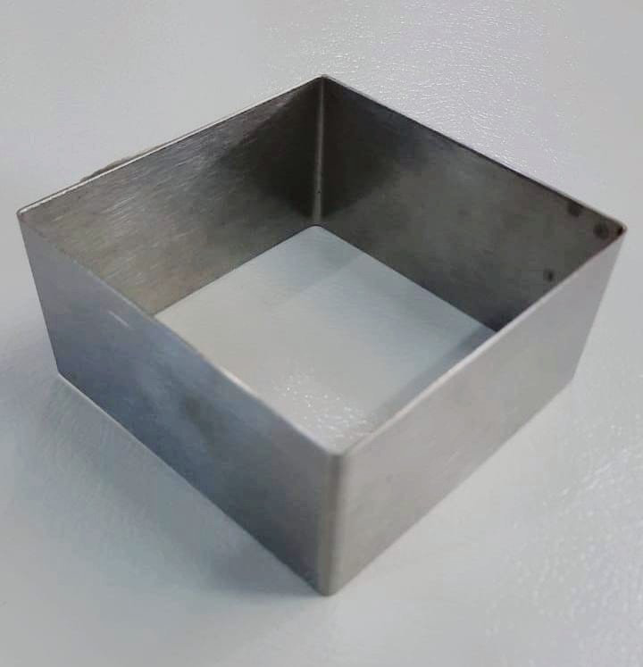CORTADOR CUADRADO DE ACERO INOXIDABLE CON MEDIDAS DE 12X12X4.5 CM.