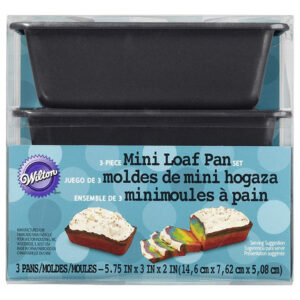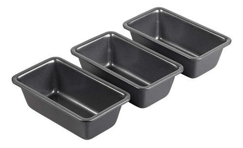 Juego de 3 moldes par mini panqué, con recubrimiento antiadherente para que los panes sean fáciles de desmoldar sin romperse. Con medidas 14.6X7X h4.5 cm