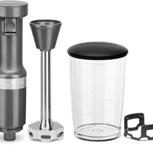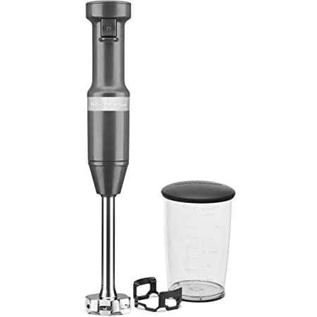Diseñado para el puré perfecto. Esta licuadora de mano modelo KHV53MDG con cable de velocidad variable KitchenAid cuenta con un brazo batidor extraíble de 8 «con cuchilla de acero inoxidable de 4 puntos para mezclar todo, desde batidos, batidos, sopas, salsas y mucho más. Es fácil de usar con el gatillo de velocidad variable interruptor e incluye un protector de sartén de extracción pendiente de patente de EE. UU. para ayudar a proteger sus utensilios de cocina. El frasco de licuado de 3 tazas sin BPA con tapa es ideal para trabajos de licuado individuales, y se puede usar para servir directamente o para almacenar su creación mezclada para un uso posterior. Con 180 watts de potencia