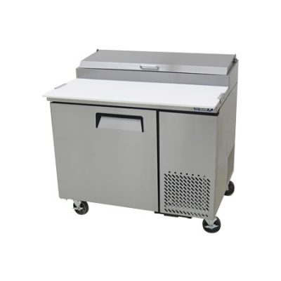 Mesa refrigerada fabricada en acero inoxidable, superficie de trabajo en acero inoxidable, 1 puerta con cierre automático y manijas ergonómicas, rejillas por cada puerta, empaques magnéticos para asegurar el sellado en el cierre. Cuenta con termostato electrónico de fácil programación para fijar la temperatura deseada.