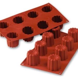 MOLDE DE SILICON 100% HECHO EN ITALIA, PUEDE USARSE PARA HORNEAR HASTA 230°C Y PARA CONGELAR HASTA -60°C. CONTIENE 8 CAVIDADES CON CAPACIDAD DE 92 ML Y MEDIDAS 175 MM x 380 MM x h50 MM, Ø55 MM.