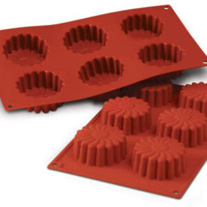 MOLDE DE SILICON 100% HECHO EN ITALIA, PUEDE USARSE PARA HORNEAR HASTA 230°C Y PARA CONGELAR HASTA -60°C. CONTIENE 6 CAVIDADES CON CAPACIDAD DE 80 ML Y MEDIDAS 175MM x 380MM x h28MM, Ø70MM.