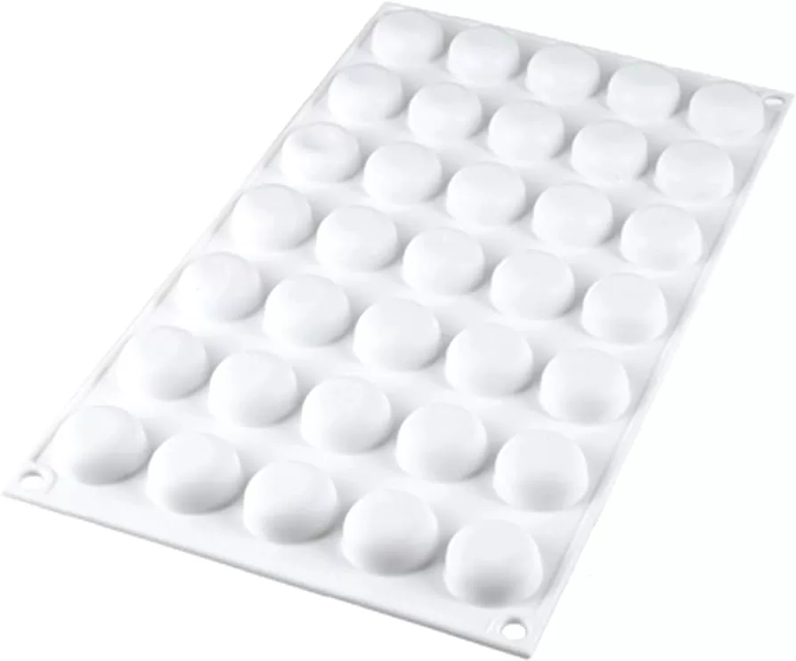 MOLDE DE SILICON 100% HECHO EN ITALIA, PUEDE USARSE PARA HORNEAR HASTA 230°C Y PARA CONGELAR HASTA -60°C. CONTIENE 35 CAVIDADES CON CAPACIDAD DE 5 ML Y MEDIDAS Ø26 MM X h13 MM.