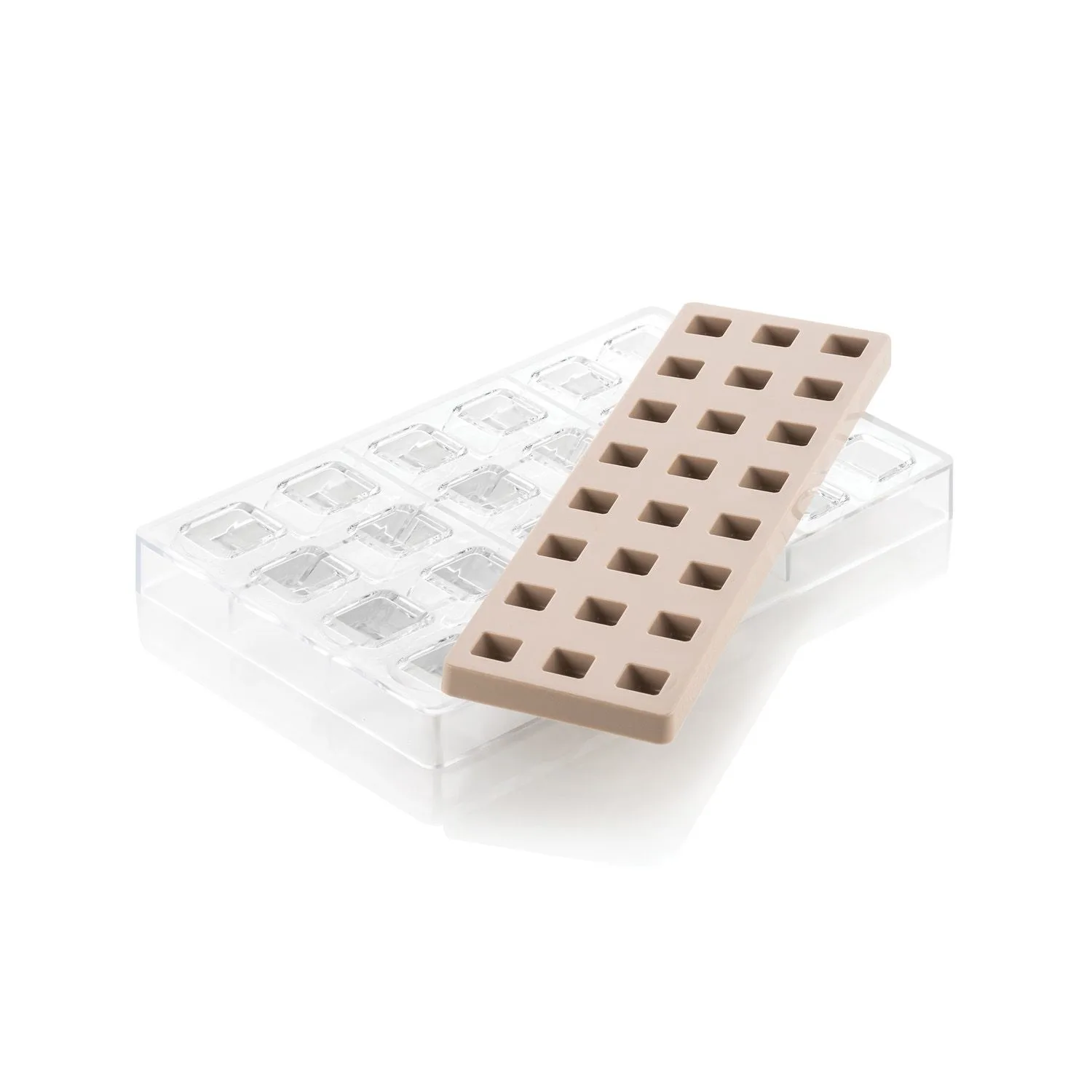 FABRICADO TOTALMENTE CON POLICARBONATO TRITAN QUE TIENEN UNA DURABILIDAD EXTREMA. ESTOS MOLDES TIENEN MAYOR RESISTENCIA A LOS IMPACTOS, RESISTEN IMPRESIONAMENTE A LOS GOLPES, ARAÑAZOS Y ABOLLADURAS. NO CONTIENE BPA, BPS U OTROS BISFENOLES. ESTE HECHO GARANTIZA LA FIABILIDAD ABSOLUTA DE ESTOS PRODUCTOS PARA EL CONTACTO CON LOS ALIMENTOS. MOLDE 100% HECHO EN ITALIA. CONTIENE 24 CAVIDADES CON CAPACIDAD DE 8.9 ML Y MEDIDAS 25MM x 25MM x h15MM. INCLUYE MOLDE DE SILICON.