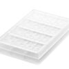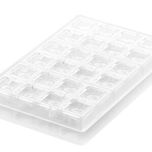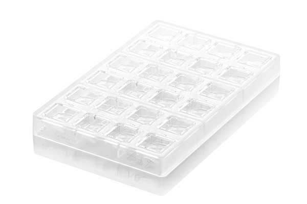 FABRICADO TOTALMENTE CON POLICARBONATO TRITAN QUE TIENEN UNA DURABILIDAD EXTREMA. ESTOS MOLDES TIENEN MAYOR RESISTENCIA A LOS IMPACTOS, RESISTEN IMPRESIONAMENTE A LOS GOLPES, ARAÑAZOS Y ABOLLADURAS. NO CONTIENE BPA, BPS U OTROS BISFENOLES. ESTE HECHO GARANTIZA LA FIABILIDAD ABSOLUTA DE ESTOS PRODUCTOS PARA EL CONTACTO CON LOS ALIMENTOS. MOLDE 100% HECHO EN ITALIA. CONTIENE 24 CAVIDADES CON CAPACIDAD DE 8 ML Y MEDIDAS 28.5 MM x 28,5 MM x h13 MM.