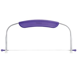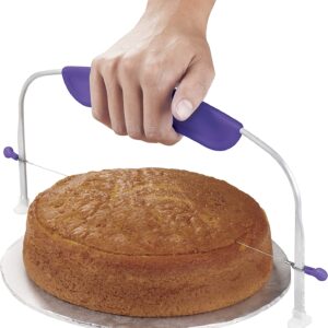Corta en capas y nivela pasteles de hasta 25.4 cm de ancho y se adapta hasta 5 cm de alto, nivela con precisión las partes superiores de los pasteles con el alambre fácil de ajustar, incluye una asa fácilmente ajustable y marcadores de altura claramente definidos. Las patas de plástico duras y planas brindan estabilidad y se deslizan con facilidad por la superficie de trabajo.