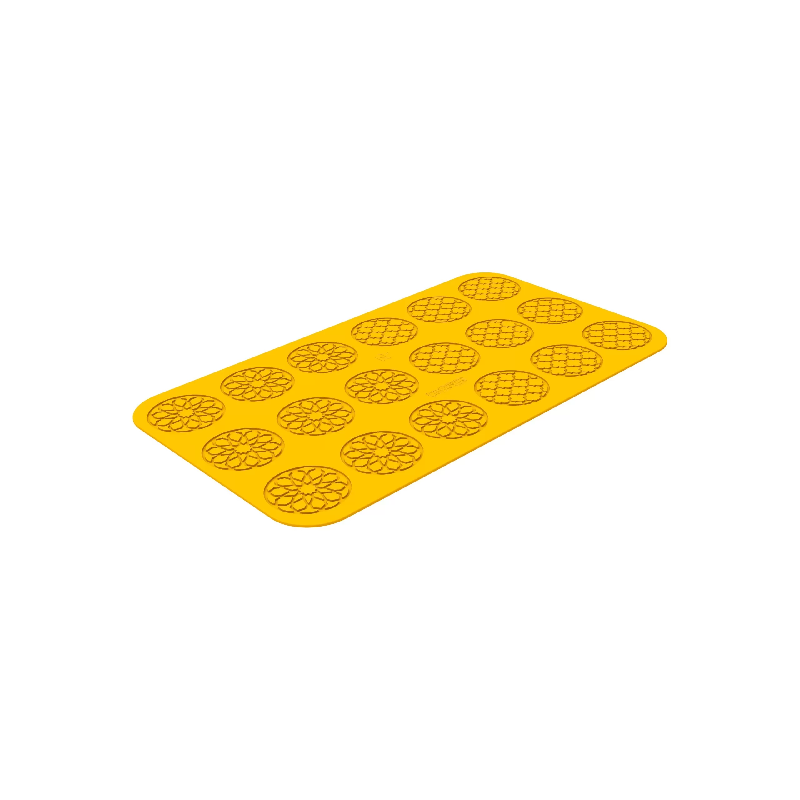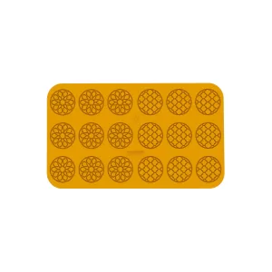 TAPETE DE SILICON 100% HECHO EN ITALIA, PUEDE USARSE PARA HORNEAR HASTA 230°C Y PARA CONGELAR HASTA -60°C. CONTIENE 18 CAVIDADES CON MEDIDAS Ø68MM x h1.5MM. TAPETE 470MM x 270MM
