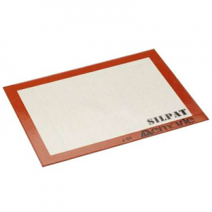 Silpat® es una tela revestida de silicona aptas para el contacto con alimentos. Se coloca en la charla de cocción con la seguridad de que los bizcochos u otros preparados dulces no se peguen.También es apto para la congelación, se puede utilizar a temperaturas de entre -40ºC y +250ºC. Garantizan una durabilidad de 2000 cocciones, además es de muy fácil limpieza. Medidas 52×32 cm.