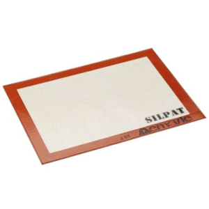 Silpat® es una tela revestida de silicona aptas para el contacto con alimentos. Se coloca en la charla de cocción con la seguridad de que los bizcochos u otros preparados dulces no se peguen.También es apto para la congelación, se puede utilizar a temperaturas de entre -40ºC y +250ºC. Garantizan una durabilidad de 2000 cocciones, además es de muy fácil limpieza. Medidas 40×30 cm.