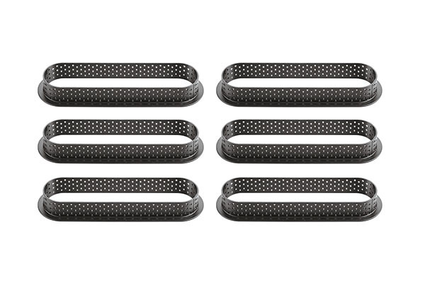 AROS DE MATERIAL TERMOPLASTICO 100 % HECHOS EN ITALIA, IDEALES PARA HORNEAR HASTA 180°C Y PARA CONGELAR HASTA -60°C. CONTIENE 6 PIEZAS DE 14.6X 3.5 CM Y 2 CM DE ALTO