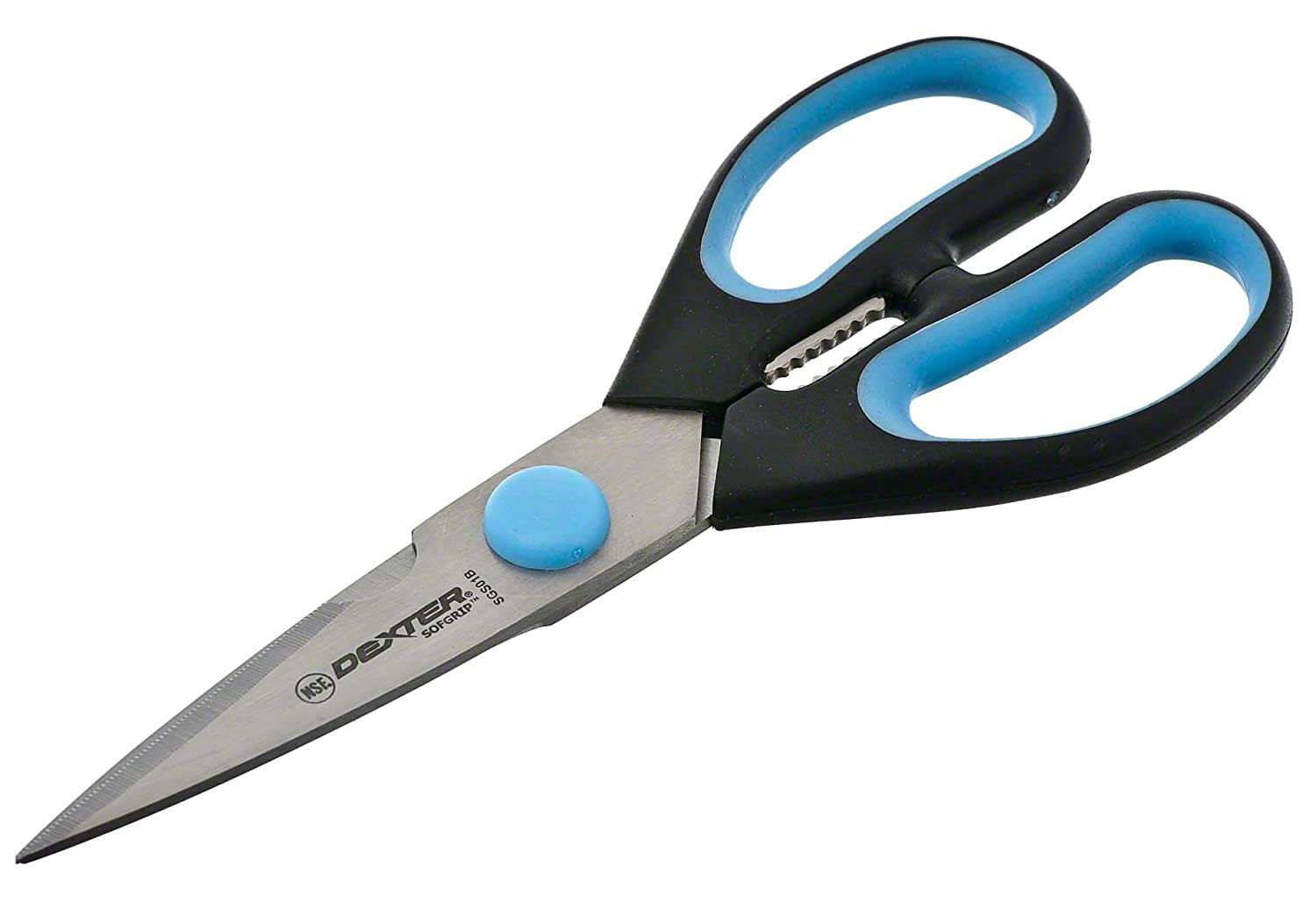 Las tijeras de cocina Dexter Russell SGS01B-CP son buenas para una variedad de tareas en la cocina, desde abrir paquetes hasta cortar raíces o desgrasar productos alimenticios. Tiene una cuchilla de acero inoxidable con alto contenido de carbono; Esto significa que es fuerte y mantendrá su borde por un tiempo, pero puede experimentar algo de oxidación o manchas a largo plazo. Los mangos son de goma y suaves en la mano del usuario.